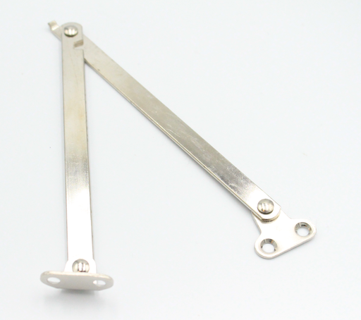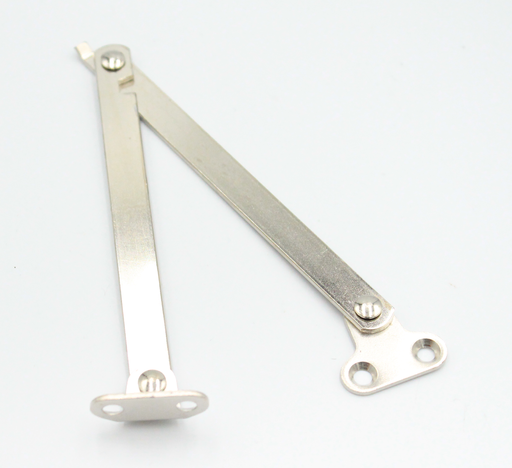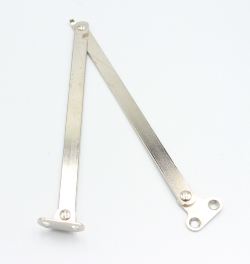 Skærehængsel med stop og en vinkel og 1 lige montageplade - venstrevendt model.
