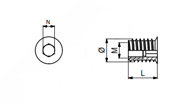 De monteres med en sekskantnøgle (N). M4 bøsninger monteres med en sekskantnøgle på 4 mm, M5 bøsninger monteres med 5 mm sekskantnøgle, M6 bøsninger med 6 mm nøgle og M8 bøsninger monteres med en 8 mm sekskantnøgle. M10 bøsninger monteres med en 10 mm nøgle.