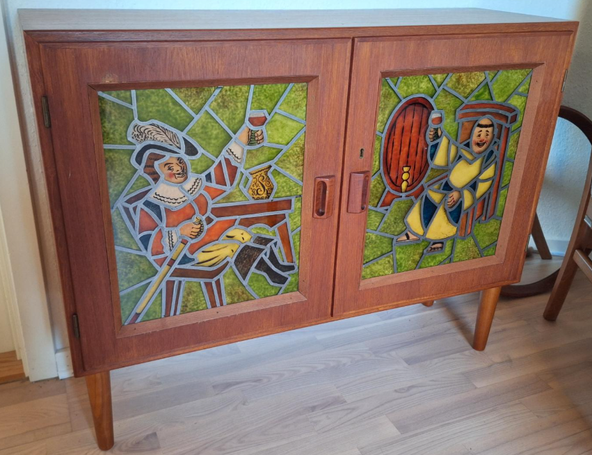 Farven er teakbejdse i en gylden-rød farve. Materialet er asketræ.
