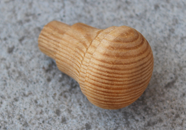 Lille træknop/knag - som kan monteres på et stykke træ - som en knagerække f.eks. Der er ingen gevind i enden, hvorved den ikke kan monteres direkte på en væg.