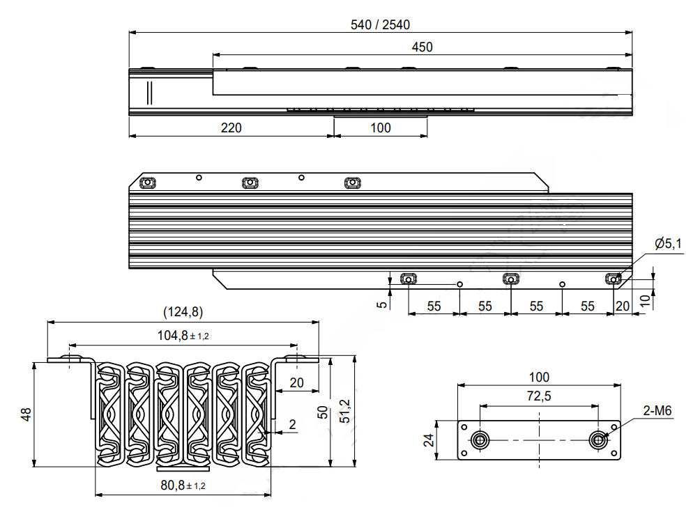 Dette bordudtræk kan bruges til et bord med op til 5 plader, da det har en åbning på 2540 mm.