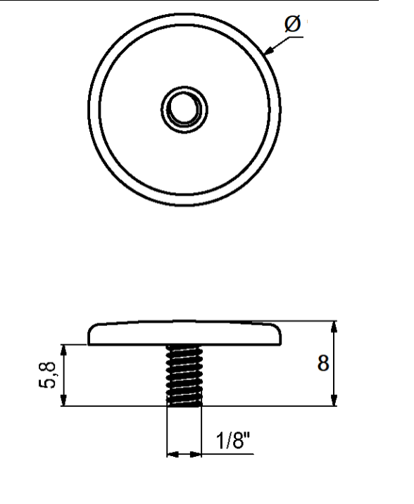 Denne dækknap er meget flot og lavet i messing, som kan bruges sammen med en skrue med et 1/8 tomme gevind. Dækhætten har et fladt hoved.