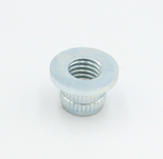 Materialet på denne gevindbøsning er metal, som er blank.