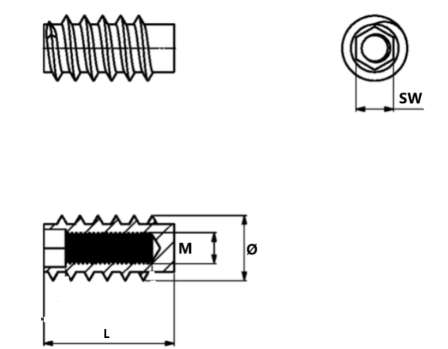 Iskruningsbøsninger har et indvendigt milimetergevind (M6, M8, M10 osv.) samtidig med, at de har et udvendigt trægevind. Det vil dermed sige, at de kan skrues ind i et emne – f.eks. et træben eller et møbel og så får man en ekstra funktion – nemlig at man kan montere noget op i bøsningen, som har et milimeter gevind. Det kunne f.eks. være en stillefod, som monteres op i iskruningsbøsningen, så man får mulighed for at justere højden på træbenet, hvis man f.eks. har et ujævnt gulv.