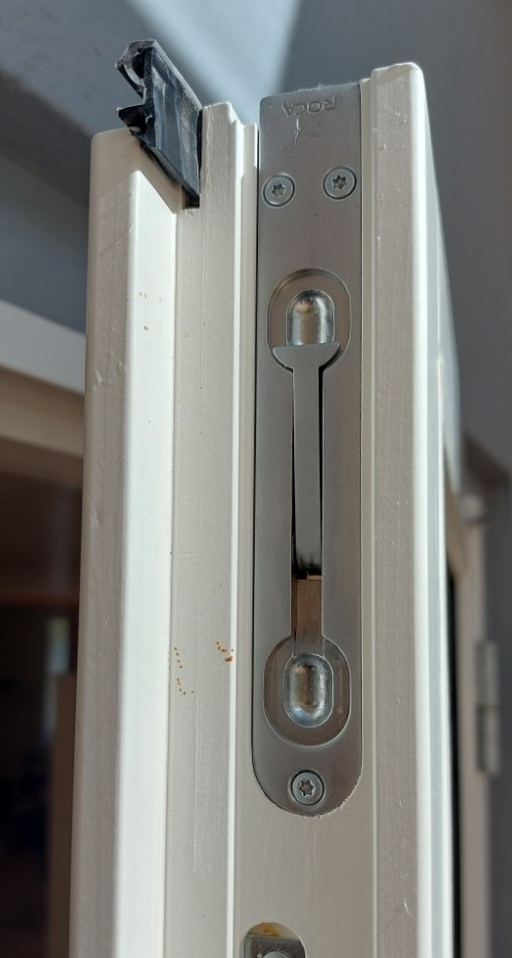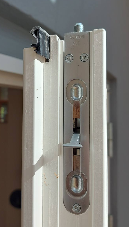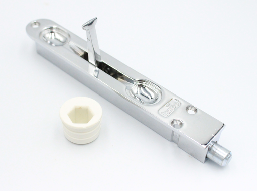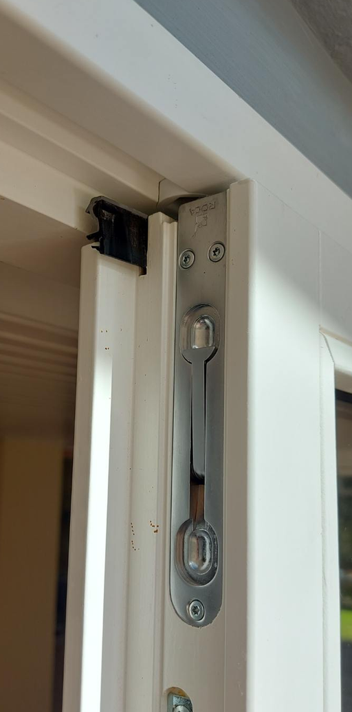 Fin standard kantrigle, som primært anvendes til at holde en terassedør eller en anden dobbeltdør lukket. Kantriglen monteres i top og bund af døren - og bøsningen monteres i gulvet og i toppen af karmen foroven inden i døren. Kantriglens tap fanger så hullet i bøsningen og låser sig fast, så døren ikke kan blive skubbet ud, når det blæser, eller når man trækker i den.