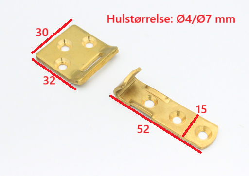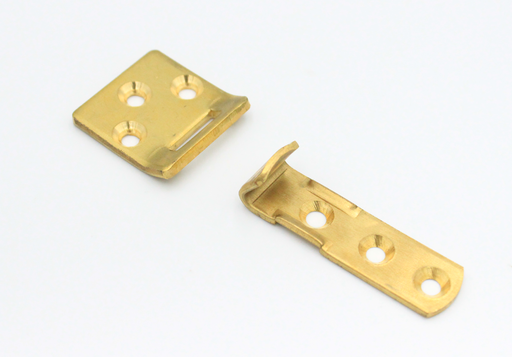 Dette fine klaphængsel i messing består af 2 dele (1 sæt) - en handel og en hundel, som det ses på fotoet. Sættet af klaphængsler kan bruges til at hænge en tillægsplade på et bord.