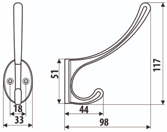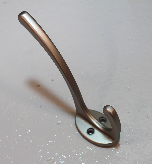 Dette er en superlækker knag i metal med en antik zink overflade. Der er 2 knager til at hænge noget på - 1 stor foroven og 1 mindre forneden.