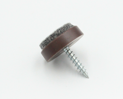Rundt glidesøm til stoleben. Produktet har monteret filt, hvorved det egner sig godt til glatte gulve - ikke tæpper. Denne vare leveres med en skrue, som giver en stærkere og bedre befæstigelse i træet end ved montering med søm.