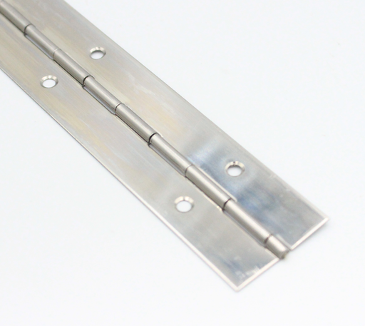 Flot klaverhængsel eller pianohængsel, som er lavet i rustfrit stål (AISI304).