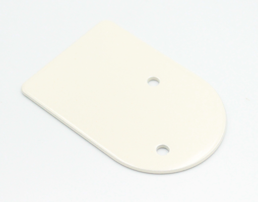 Pladen er lavet i metal, som er hvidmalet.