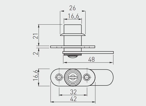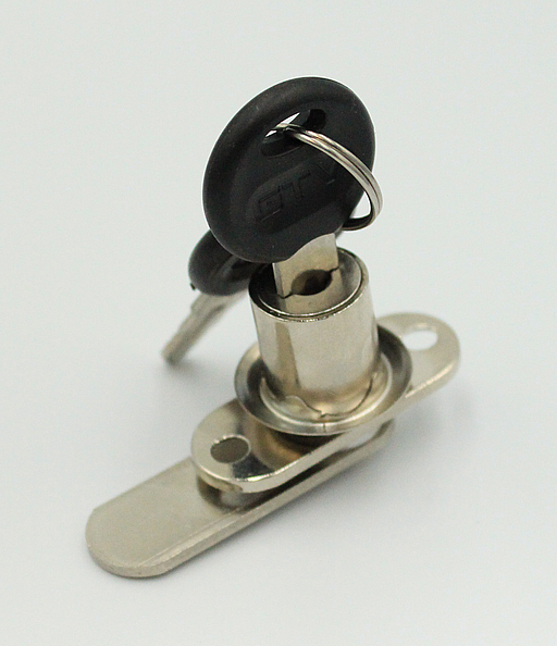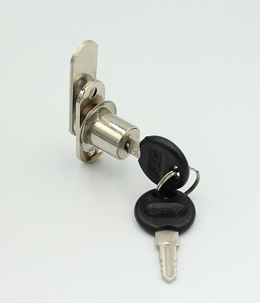 Denne møbellås har en diameter på "halsen" på Ø16,6 mm og er med et lige karmstykke samt 2 stk nøgler.