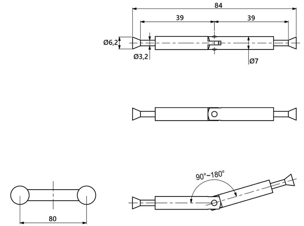 Total længde: 84 mm