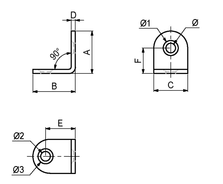 Til denne vinkel skal der bruges 2 skruer til at fastmontere 1 stk vinkel. Bemærk. Der er 2 forskellige størrelser huller i denne vinkel.